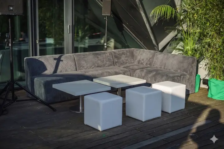 Material: Stoff, BHT: 100x75x75cm, SH 42cm, nicht outdoorfähig